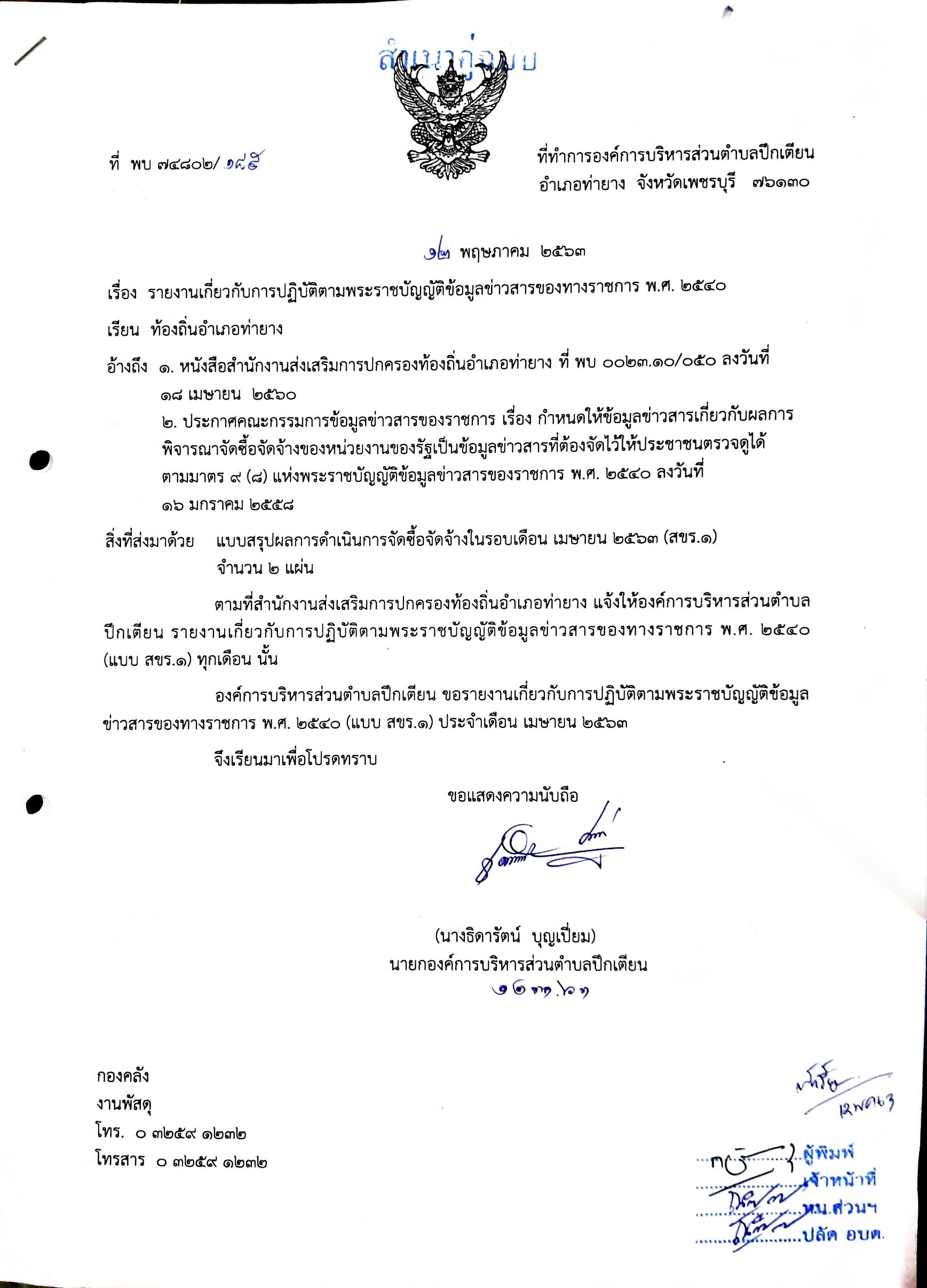 องค์การบริหารส่วนตำบลปึกเตียน อำเภอท่ายาง จังหวัดเพชรบุรี โทร 0-3247-3566