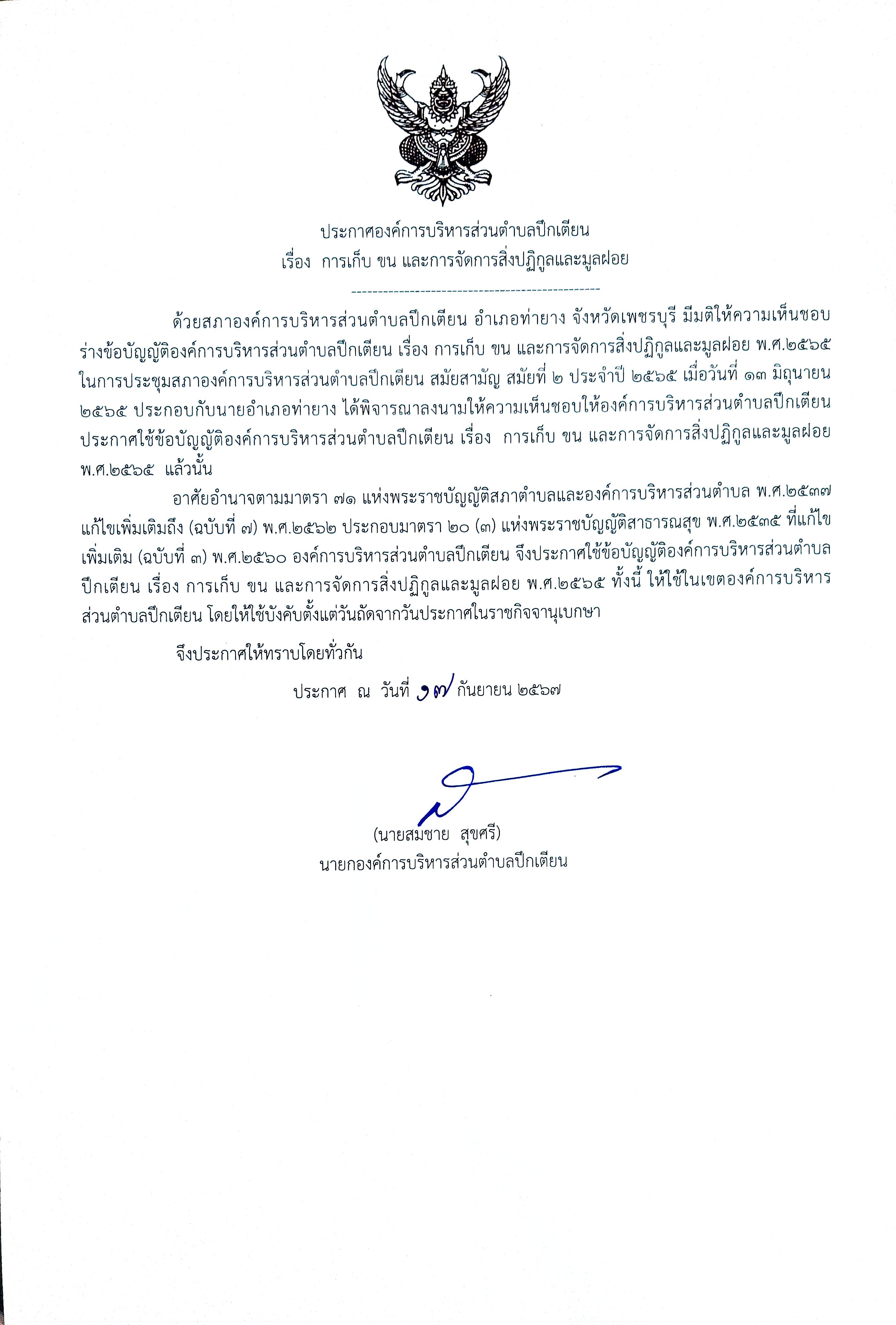 องค์การบริหารส่วนตำบลปึกเตียน อำเภอท่ายาง จังหวัดเพชรบุรี โทร 0-3247-3566