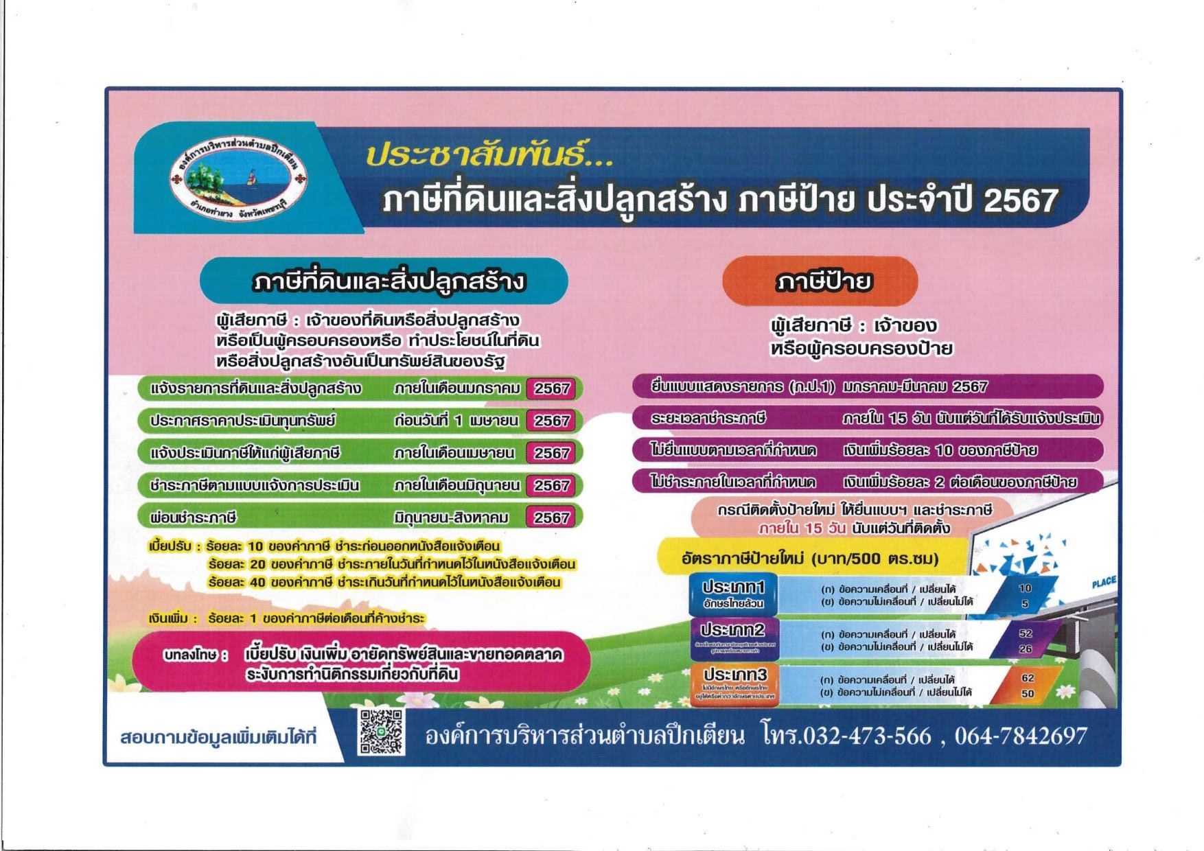 องค์การบริหารส่วนตำบลปึกเตียน อำเภอท่ายาง จังหวัดเพชรบุรี โทร 0-3247-3566