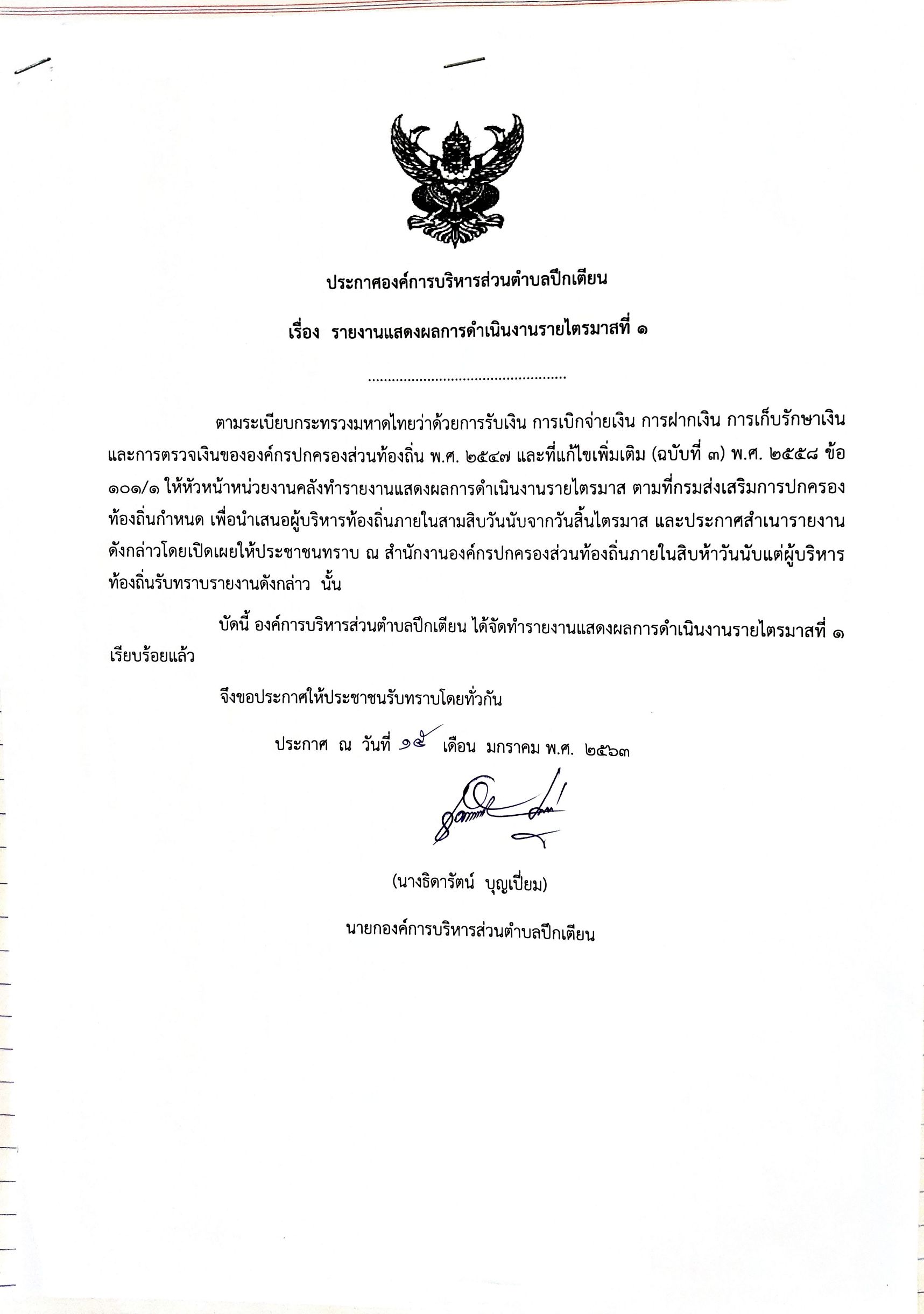 รายงานผลการดำเนินงานประจำปี