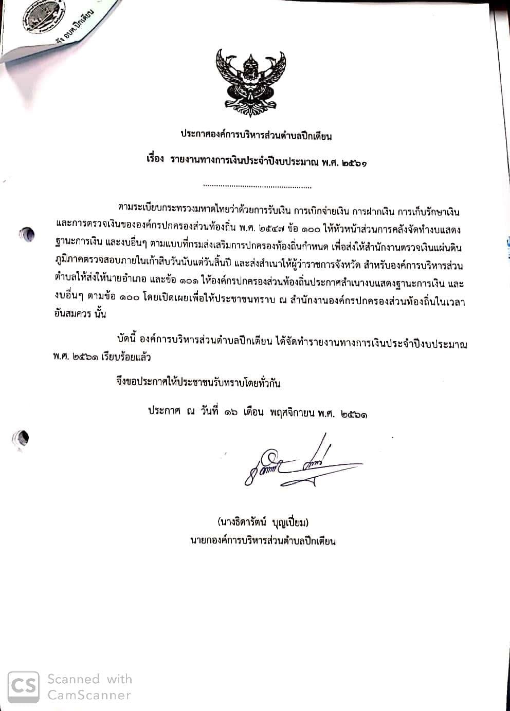 ประกาศองค์การบริหารส่วนตำบลปึกเตียน